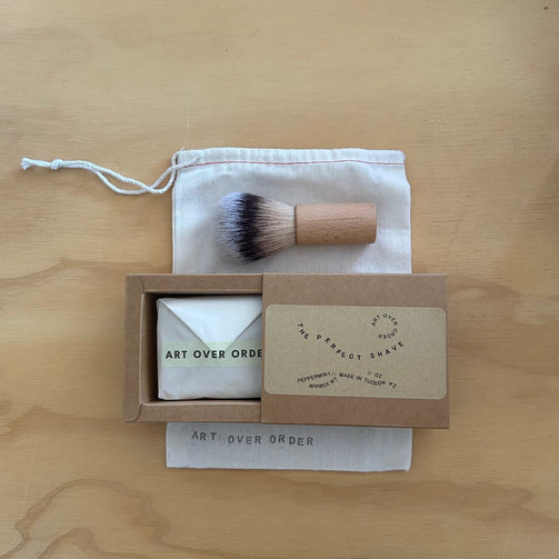 CONGRATULATIONS! You've found the perfect shave soap. It's specially formulated to create dense fluffy peaks of meringue like foam, like traditional shave foam but without the can. This shave soap is approximately 3 oz, paired with a bamboo and plant bristle shave brush and perfectly gift packaged in a reusable cloth bag :)